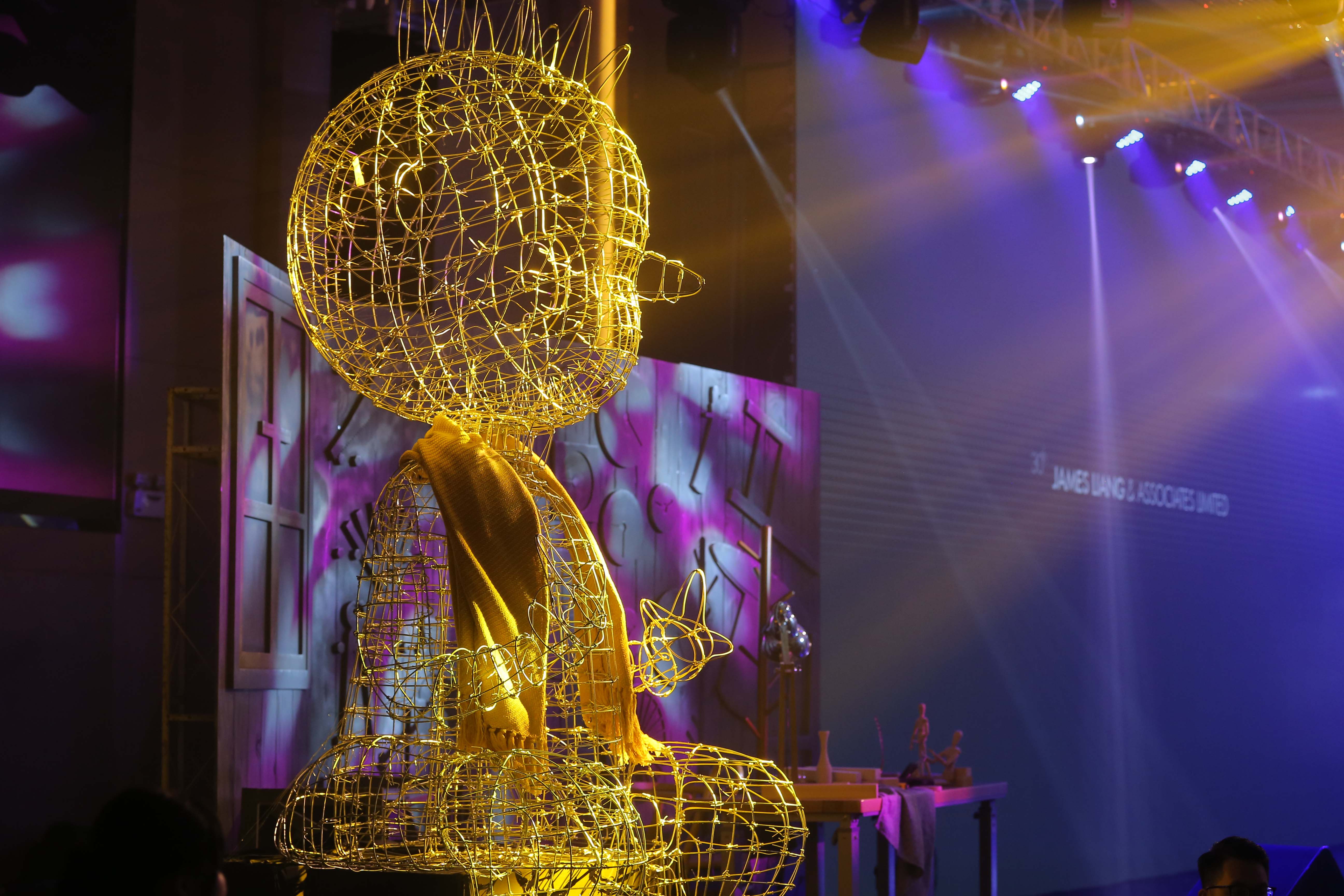 Minnie:“ 其實現場埋伏著驚喜。感謝25位道具組同事,隱身在場地的每壹個角落。舞臺劇融合空間、軟裝、藝術、視聽四個板塊設計。包括壹個巨型的鋼鐵木偶、每壹幕都是同事們日夜辛苦創造的,爲他們感到自豪。”